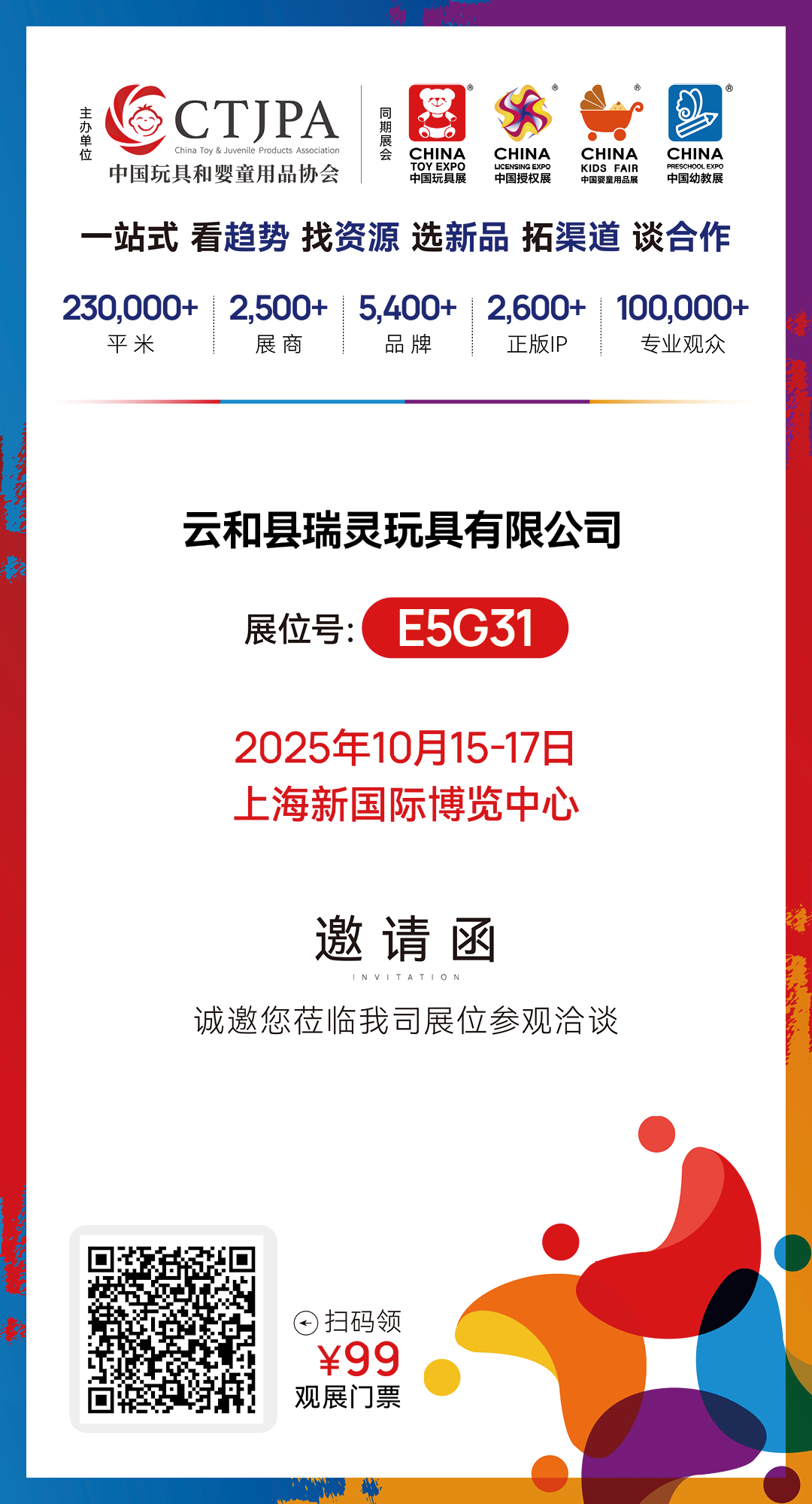 云和县瑞灵玩具有限公司诚邀您莅临CTE中国玩具展&潮玩展